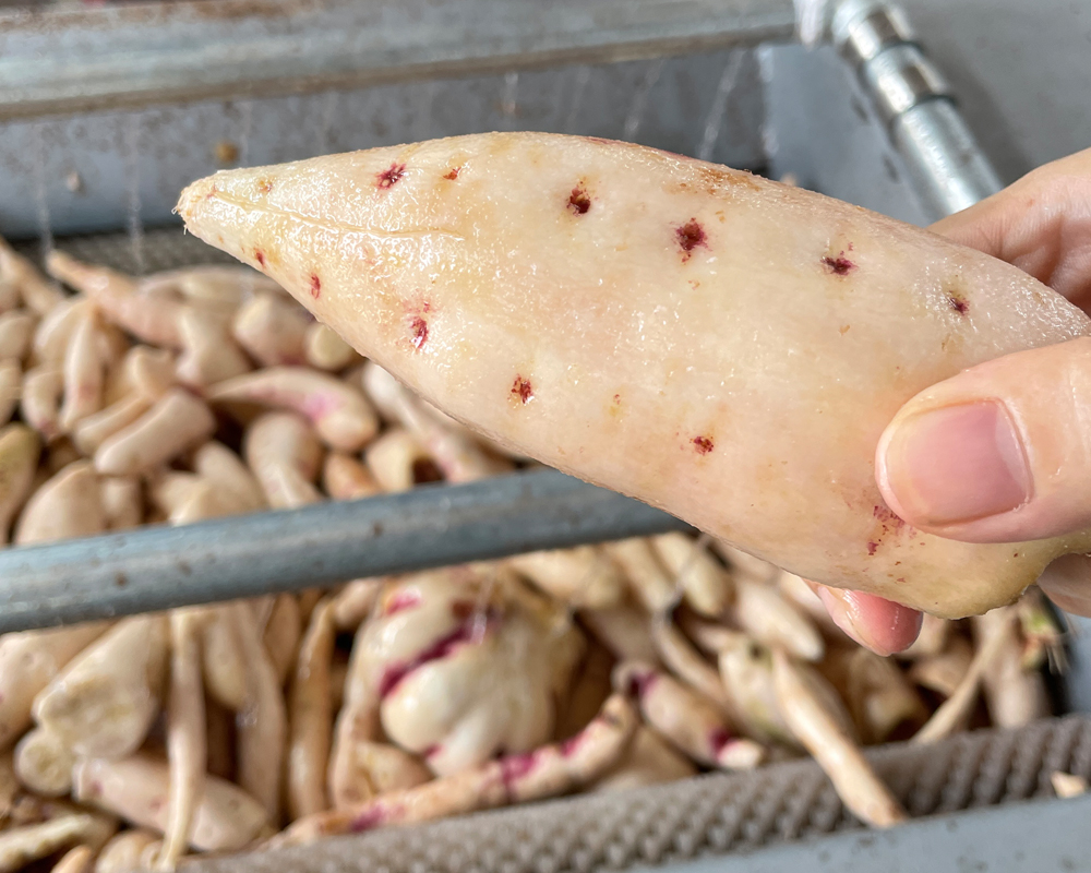 毛刷清洗机适合小型家庭型淀粉客户选购,产能在1-3t/h,毛辊去皮清洗机吸取了薯类加工机械的特点设计制作而成,采用毛刷原理,通过毛刷的转动采用两侧把物料向内侧居中,互相摩擦,毛辊的硬度适中,可以将根茎类清洗干净,该机设有高压喷淋装置,用水冲洗物料,从而达到清洗干净的目的,底端也可设计将清洗的污物通过一个收集盘,将物料流向一个方向,防止污物和污水污染地面,可根据客户的需求设计。主要由电机、变速器、毛辊、电器等组成,广泛适用于马铃薯、红薯、木薯等根薯类的清洗,除皮。该机具有耗能小,体积小,重量轻,外形美观和操作方便的特点。箱体采用优质不锈钢材质,不锈蚀,清洁卫生,毛辊不易变形,毛刷采用熟料尼龙线绳轧制而成,经久耐用。